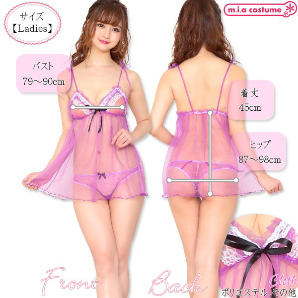 仕様:Mサイズ B79〜90cm・H87〜98cm・着丈45cm セット内容:ベビードール、ショーツ 素材:ポリエステル、その他