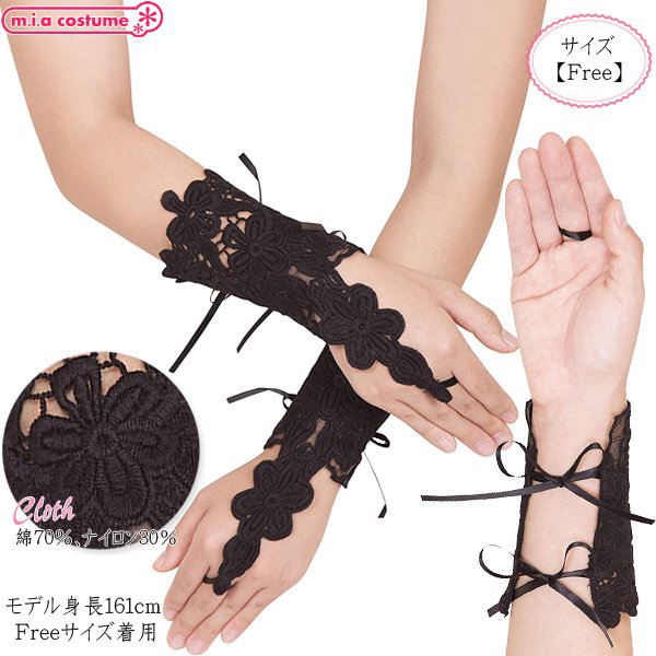 HOME > コスプレ衣装 > 小道具(ニーソックス・猫耳) > レースグローブ Chloe ブラック