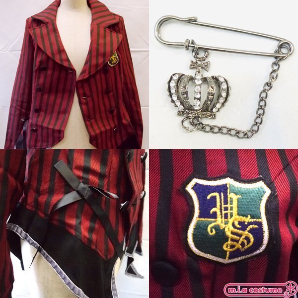 仕様:Mサイズ:B90cm・W76cm・肩幅37cm・袖丈58cm・着丈48〜77cm セット内容:ワッペン付きジャケット(前ボタン)、ブローチ 素材:ポリエステル、その他