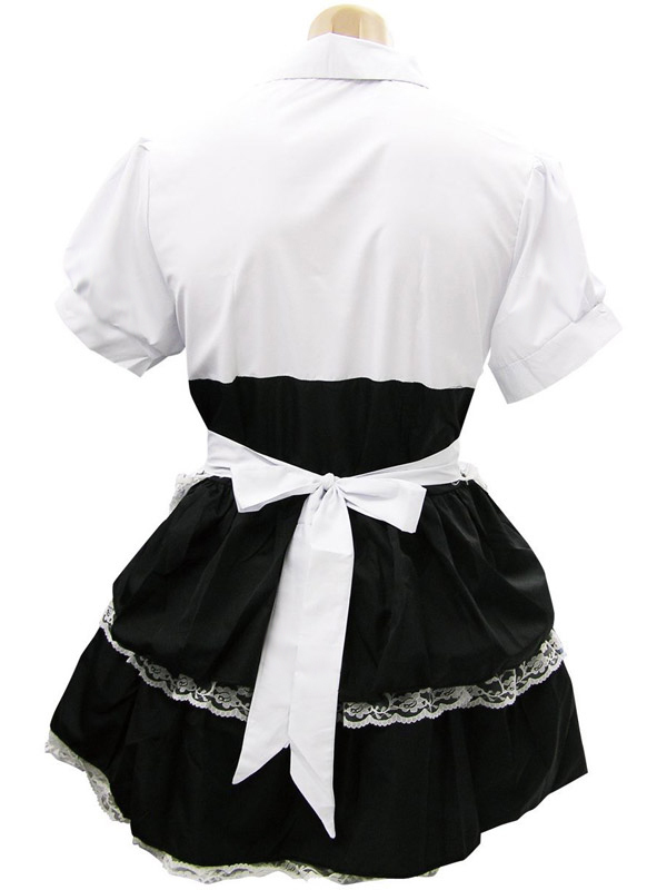 レース飾りがお洒落なシャツ一体型ワンピース、フリルエプロン、チェックのネクタイ、サイドリボン付きカチューシャ、黒ハイソックスの豪華5点セット!憧れのメイドさんになれちゃう、セクシーコスチュームです。