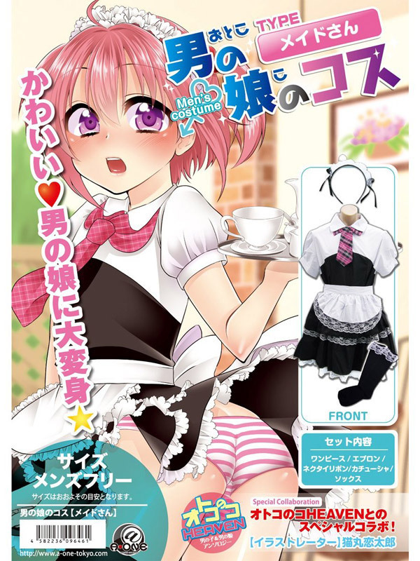 男の娘待望、メンズフリーサイズ!桃色ネクタイが超可愛い、メイド服コスチューム。