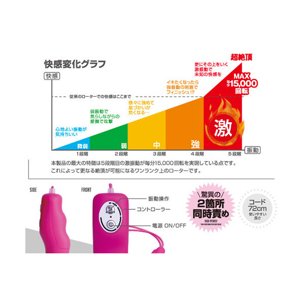MAX15000回転!驚異の高速回転が敏感な箇所を容赦なく責める、究極のダブルローター「ビブラル ツイン ピンク」(生活防水仕様)です。