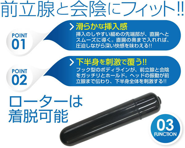 ●細めの先端がスムーズな挿入をサポート●フック型のボディラインが敏感部分をくまなく刺激●ローター(着脱可能)は操作が簡単なボタンスイッチ●単四電池×1本使用。