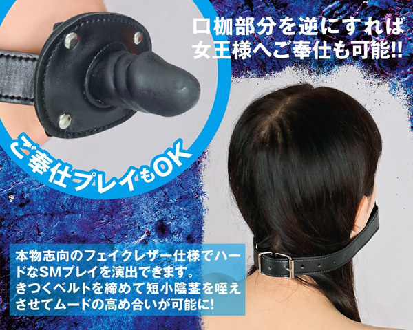 ●口枷・短小陰茎ver●高級フェイクレザー素材を採用●奉仕プレイも可能なミニディルド付き●サイズ→ベルト調節可能。