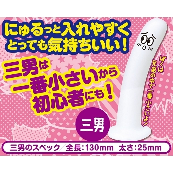 ●本体全長13cm・太さ2.5cm●シリーズ中一番小さい三男●肌触りの良いシリコン素材●つるんと滑らかなフォルム●強力吸盤でピッタリ固定。
