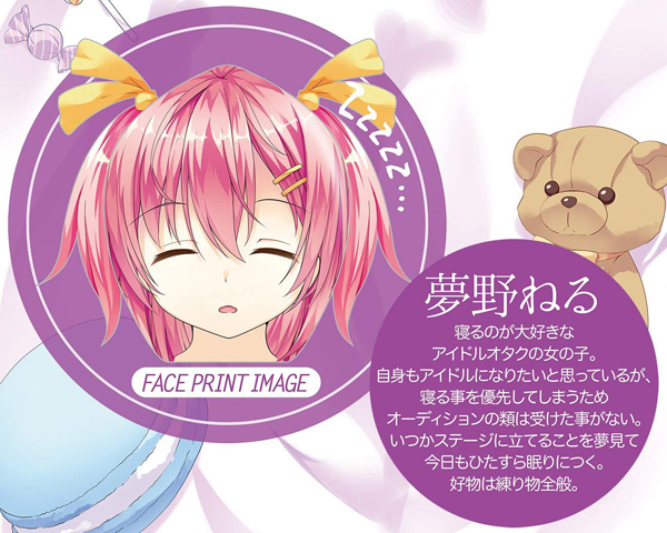 全長140cmのおねんねスタイルだから添い寝にもぴったり!フェイス部分は眠り顔のイラストがプリントされており、顔も貴男に傾けているので愛らしさも抜群♪好みの下着やコスプレをコーデして添い寝を楽しんだり、そのままプレイもできちゃいます!