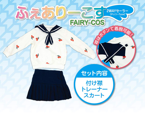 商品ID:e25876 カラー:-- 種類:ラブドール/2WAYセーラー チェリーType 仕様:パッケージ:36.0×25.0×2.0cm セット内容:付け襟、トレーナー、スカート