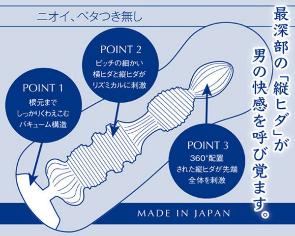 さらに最深部では360°配置された縦ヒダが亀頭全体を包みこんで刺激します。