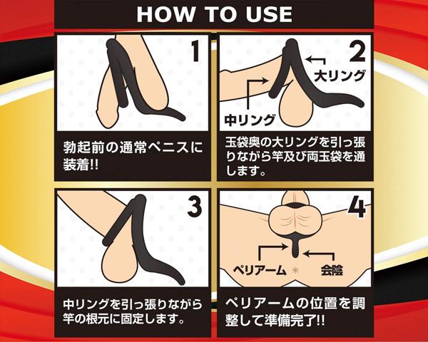 人間工学に基づき設計されたリングが身体にジャストフィット!大・中2つのリングで締め付けながら突き出たペリアームで会陰を刺激、射精感と勃起力を大幅に増幅させる♪使い慣れた中級者から上級者まで、ドライオルガのような極上の快感を求める方に。