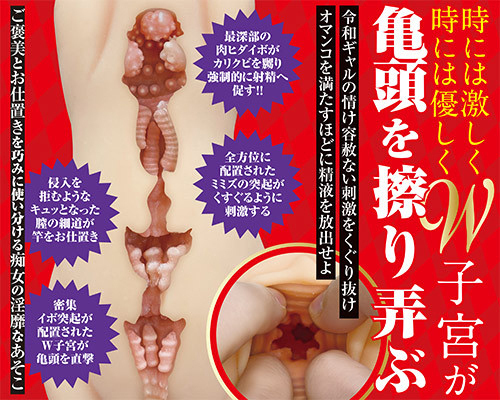 全体をまるっと飲み込むぷるモチ質感の肉厚315gボディ♪肉ヒダイボでカリクビを刺激しながら、進むのを拒むような極狭道でギュッと締め付け容赦なくお仕置き!最後はイボ突起が密集するダブル子宮で亀頭を擦りあげ強制射精へと促す♪ローション付属
