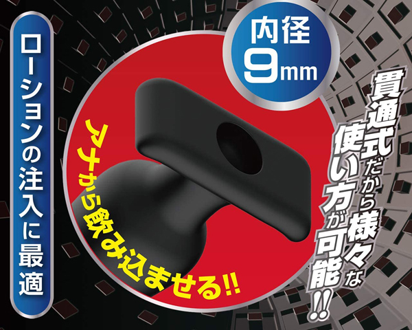 ミニサイズで初心者さんでも安心して挿入できる!ローションの注入にも便利な貫通式のアナルプラグ。内径約9mmの口が開いているので、液体を注入したりナカを覗いたり…アイデア次第で色んなプレイが楽しめる!