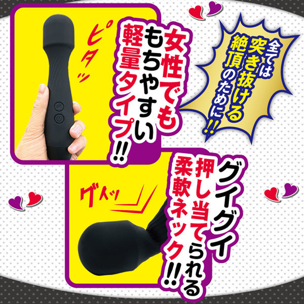 重量103gの軽さと、欲しい場所に当てやすいネックの柔軟性、初心者でも簡単に使えるシンプル操作が魅力!振動パターンは10種類と豊富に搭載し、ヘッド部3.7cmと程よいサイズ感で挿入もOK♪おうち時間のおともに◎充電1時間で約40分稼働、充電ケーブル付