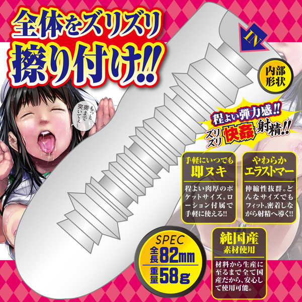 性欲女子とサクッとひとヌキ!エーワン×尾髭丹が送る最強ミニオナホシリーズ!肉ヒダ突起の連続で射精感をグングン高めてくれるミニサイズの非貫通オナホール!全体をズリズリ擦り付け、鋭利な凹凸が射精へ導く!程よい肉厚のポケットサイズの、ローション付属なので手軽に使える!更に材料から生産に至るまですべて国産で安心。