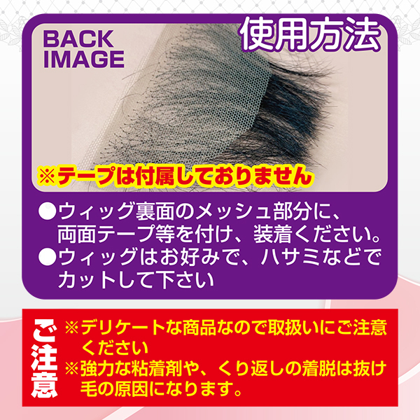 ※強力な粘着剤や、くり返しの着脱は抜け毛の原因になります。