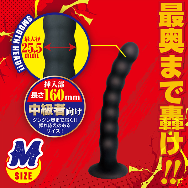 Mサイズ、奥までグングン届く!満足感溢れるサイズ!・シリコン素材・強力吸盤付き