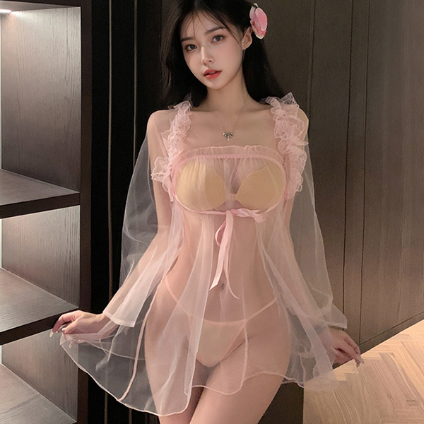 ふんわりとしたチュールレースが印象的なコスチュームセットです!セット内容はベビードール・ボレロ・ショーツの3点♪全体をやさしいピンクカラーでまとめた、可憐なデザインです!チューブ型ベビードールは軽やかでシンプルな仕上がり♪共布のボレロを羽織れば、胸元にリボンを結ぶだけで華やかさがアップします!チュール素材の透け感が柔らかさを引き立て♪軽やかな着心地も魅力です!ショーツはTバック仕様でスタイルすっきり♪Mサイズでフィット感も良好です!コスプレや撮影にもぴったりなフェアリー調デザインです!