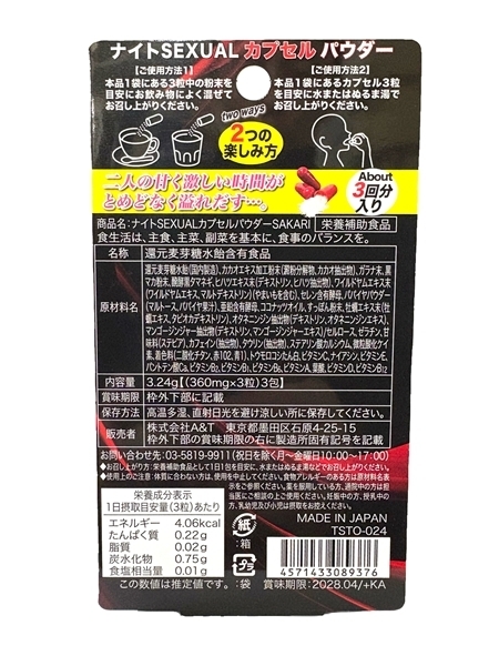 HOME > エッチコスメ > 男性コスメ > ナイトSEXUALカプセルパウダー sakari(サ・カ・リ)