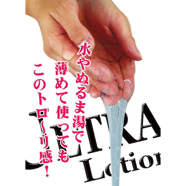 ウルトラ級の高粘度!ネットリ仕様の気泡入り超高粘度ローション「ウルトラローション」クリア(570ml)。今まで味わったことのない濃厚な使用感!乾きにくいので、長時間のプレイにも最適です。水やぬるま湯等で2倍に希釈すれば、たっぷり使えるのでとっても経済的!また、片手で開閉できるワンタッチキャップは、継ぎ足したい時にも便利です。