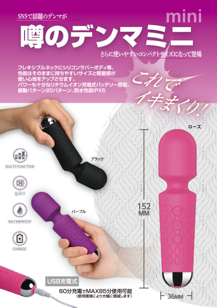 小型でもしっかりイカせてくれる「噂のデンマミニ(MINITOY)」です♪人気のあの電マがさらに使いやすいコンパクトサイズになって新登場!フレキシブルネックにシリコンラバーボディ等、性能はそのままに、持ちやすいサイズと軽量感で使い心地がさらにアップしました♪パワーも十分なリチウムイオン充電式バッテリーを搭載!60分の充電で最大85分使用可能(使用環境により大幅に増減します)。