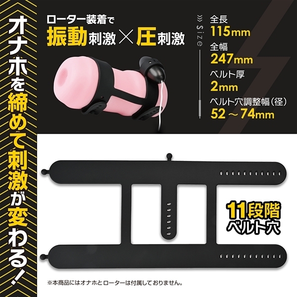 11個のベルト穴で様々なサイズのオナホ・締め方に対応出来ます。