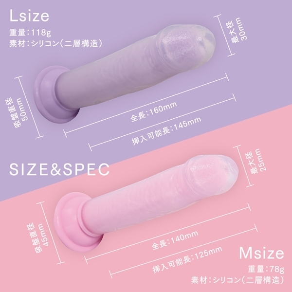 芯のある構造と柔らかな外層が特長のリアル仕様ディルドです♪内部には硬めの芯材を使用し、しっかりとした挿入感を実現しています!外側はぷにっと柔らかな素材で包まれており、自然な感触が楽しめます♪中外ともに高品質なシリコン素材を採用し、安全性と耐久性を両立しています!全長約14cm、挿入可能長は約12.5cmと扱いやすいMサイズです♪手に馴染みやすく、初心者から経験者まで幅広くおすすめできます!底面には強力な吸盤が付いており、壁や床にしっかり固定可能です♪安定感があるので、好きな姿勢で安心して使用できます!クリア×ピンクのカラーリングで見た目も可愛く、気分も上がるデザインです♪しっかり固定&やわらか仕上げで、使いやすさと楽しさを両立したアイテムです!毎日のセルフケアに取り入れやすい、実用性の高い一本です♪