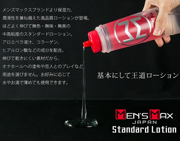 これぞ基本中の基本とも言える王道ローションがメンズマックスブランドから登場!アロエベラ液汁・コラーゲン・ヒアルロン酸など、お肌に嬉しい成分も配合!マルチに使える中高粘度なので、オナホールからマッサージプレイまで用途を選ばずお使いいただけます。