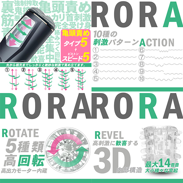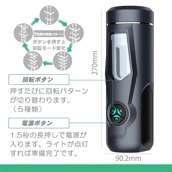 ピストンと回転で亀頭を強力に刺激する電動ホールです。