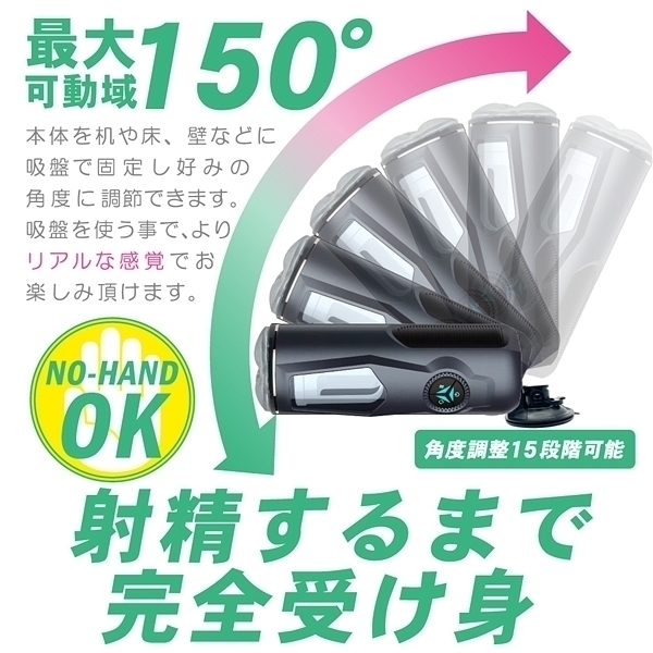 壁や床などに設置したまま最大150度の角度調整が可能な、強力吸盤も付属しています。