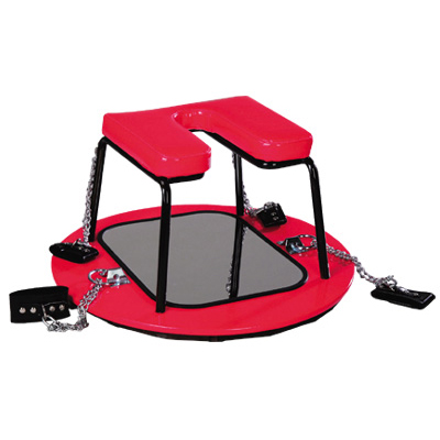 赤い丸形の台座には手枷と足枷がついていて相手を完全に拘束する。
