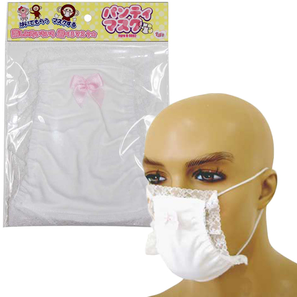 使用済み下着を購入したいが買えずにいる方、女性ものの下着を穿いてみたい方にも最適!清潔感のある白パンツをモチーフにしたユニークな日本製マスク。