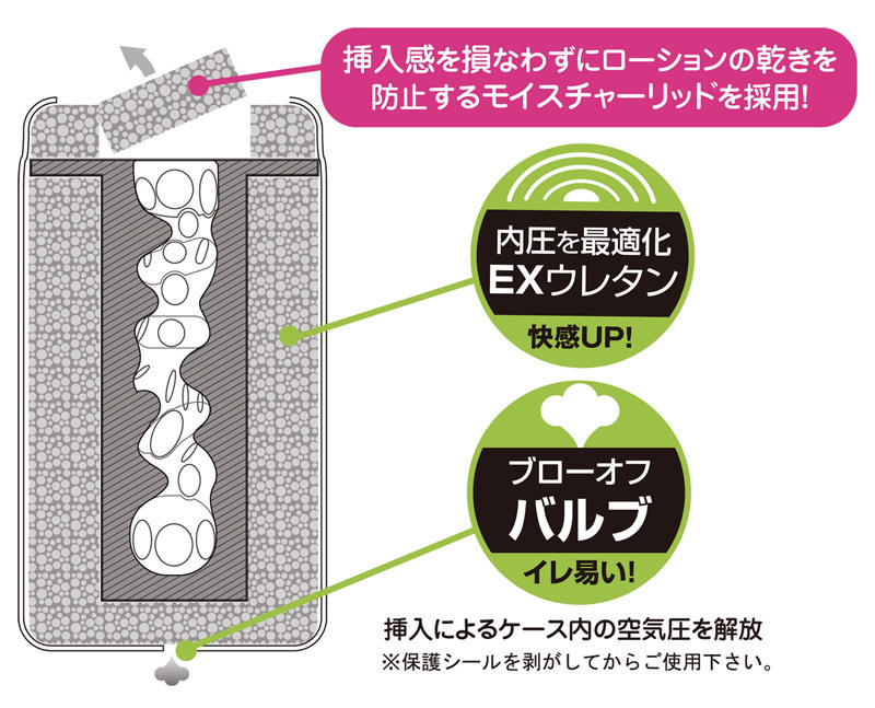 トイズハートのこだわりが詰まったオナカップが登場!カップ上部には、ローションの乾きを防止する厚めのフタを採用!後処理の簡単な洗い不要ローションがたっぷり充填されているので、ヌキたい時にすぐ使えます!こちらは大きくワインディングした膣内の大型イボが、確実な刺激をもたらす「ノーマル」タイプ!内部は内圧を最適化する「EXウレタン」を使用し快感もアップ!底部にはカップ内の空気を開放できるバルブも付いた、とっても便利なオナカップです。