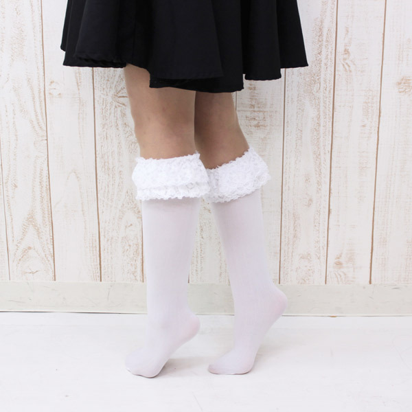商品ID:p11284 カラー:白 種類:お買い得商品/DE6041WH 仕様:フリーサイズ:22〜25cm 丈(はき口からつま先まで)約43cm・履き口約18cm・レース縦幅5.5cm 素材:ナイロン