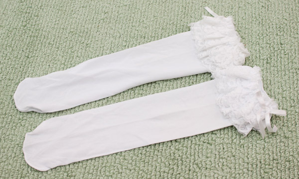 【430円★数量限定】リボン付きレースハイソックス 白<お一人様1点限り>