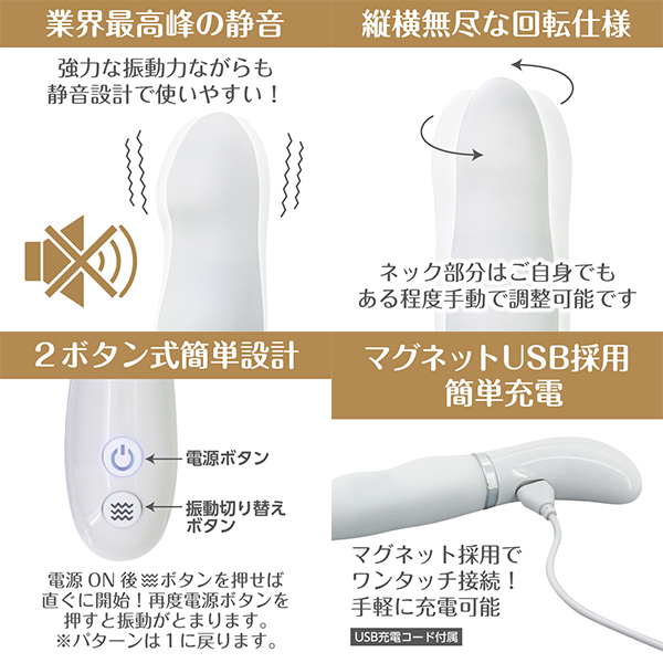 スマートでスタイリッシュな見た目とは違った強力静音振動、舌のような滑らかな回転でアナタのオーガズムを最高潮へと導きます。