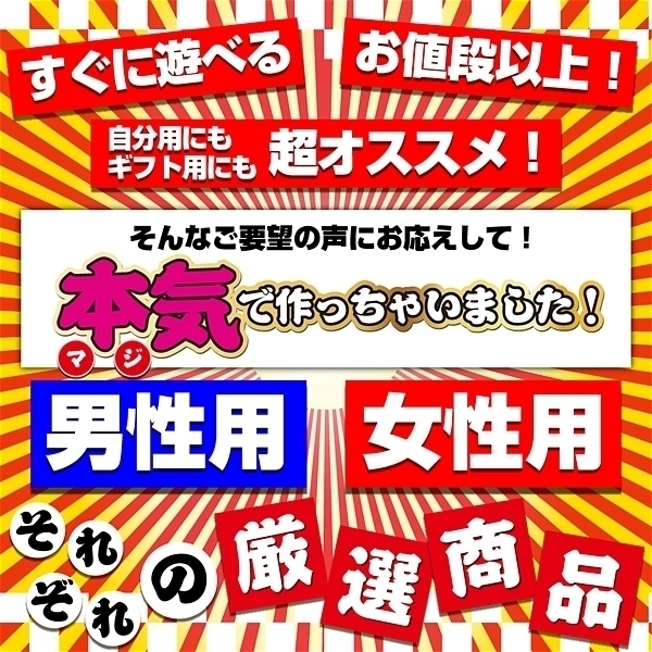 トアミが本気(マジ)で作った福袋!より充実した!よりコスパのいい!買って嬉しい!もらって嬉しいを考えたから、今回は女性用を用意しました!中身は合計して定価¥10000以上確定!絶対に損させない、中身を考え抜きました。イベントの景品や、プレゼントにも超オススメ!お得にドキドキ・ワクワク・気持ちいい♪を味わいたい人にオススメの逸品♪