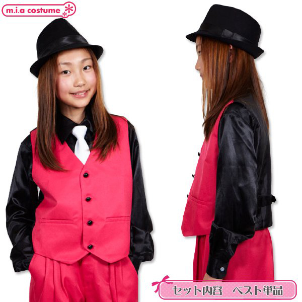 仕様:150サイズ 対応サイズ:身長145〜155cm・B〜78cm・W〜64cm 実寸:着丈47cm セット内容:ベスト単品(前ボタン) 素材:ポリエステル100%