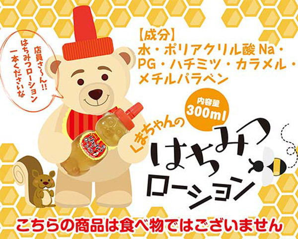 キュートなクマちゃんボトル入り♪本物のはちみつを配合した香り付きローション「くまちゃんのはちみつローション」。