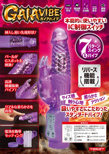 パワフル・丁度良いサイズ感のNEWスタンダードバイブ。使い勝手の良い7パターン振動&スイングをIC制御。挿入し易い先端から波打った刺激が味わえる形状とGス〇ットを責める回転パールギミック搭載。可愛いサブバイブの微細高速振動モーターが外局部をしっかり刺激。肌触りの良い高品質TPE素材に静音設計・生活防水も装備した正に次世代の魔人系バイブ!カラー:パープル