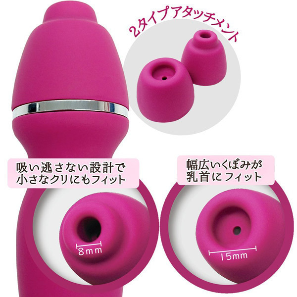 乳首にぴたっ!クリにぴたっ!吸い逃さない設計でしっかり捉えるなめらかシリコン素材のアタッチメントが付属。