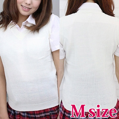 制服コスプレと相性抜群!オールシーズンOKな白無地ニットベスト単品(M)。