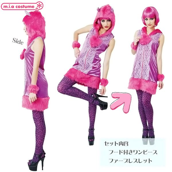 仕様:Ladiesサイズ:B〜90cm・W〜70cm・H〜96cm・身長155〜165cm・着丈83cm・肩幅38cm・手首回り20〜26cm セット内容:フード付きワンピース(前ファスナー、フードとファー部分に裏地あり)、ファーブレスレット 素材:ポリエステル100%