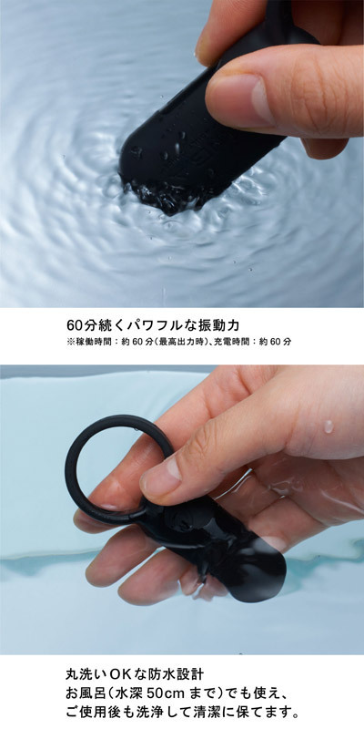 シリコンリングを男性自身の根元に装着してスイッチオン!指に装着すればスマートフォルムの愛撫用ローターにも変身。