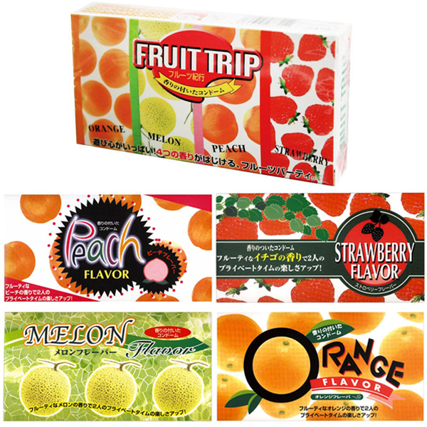 ※【セット内容】ピーチフレーバーコンドーム 12個入り(u00339)、ストロベリーフレーバーコンドーム 12個入り(u00340)、メロンフレーバーコンドーム 12個入り(u00341)、オレンジフレーバーコンドーム 12個入り(u00342)、フルーツ紀行 12個入り(u00343)