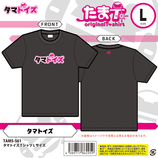 黒の半袖Tシャツに「タマトイズ」のテキストと可愛いロゴをプリントしたファン必見の公式グッズ、通称「たまT」が登場。私服や部屋着用、ご友人へのプレゼント等に◎●メーカー型番:TAMS-561