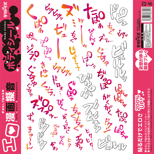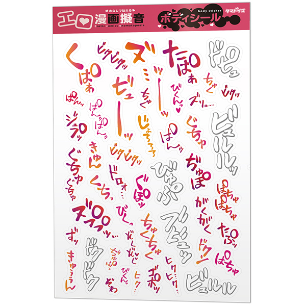 エッチをするときの様々な擬音がエロいフォントで身体に貼れるシールになりました♪「エロ漫画擬音ボディシール」。