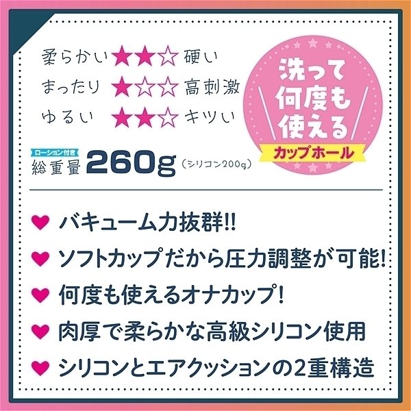 リアルエロゲシチュエーション!DT公式コラボ商品。新感覚!ソフトカップタイプ。ソフトカップだから圧力調整が可能!シリコンとエアクッションの2重構造。シリコン部分を外して洗える!ローション付き。●姉川絢音