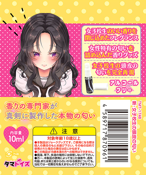 リアルな匂いに大興奮!!女子校生いい香りを閉じ込めたフレグランス、女子校生を抱きしめた時に香る甘い頭皮の匂い、女子校生のフェロモンたっぷりのいい匂い、匂いで感じる新感覚、あのとき感じたあの匂いをもう一度、女性の特有の匂いを詰め込んだ香りグッツ、衣装に匂いのアクセントを。