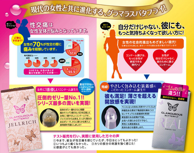愛し合う二人には必要不可欠!圧倒的な特盛りジェルが嬉しいグラマラスバタフライのコンドーム。