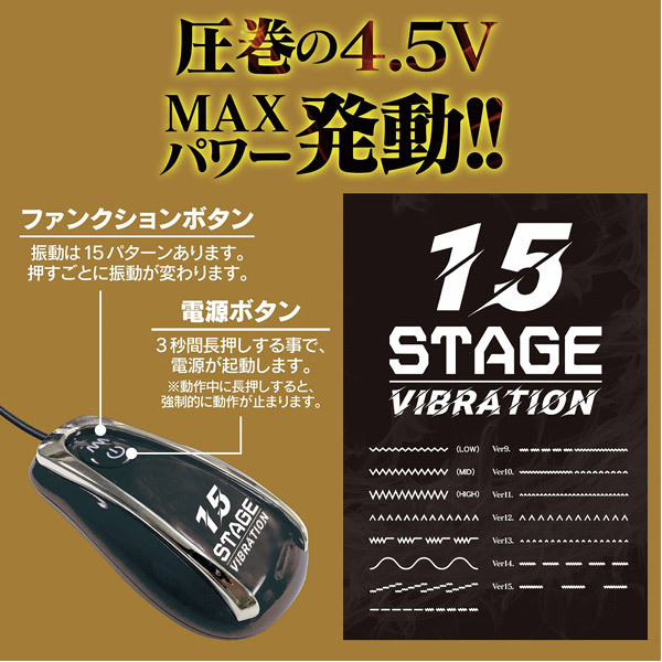 15段階もの振動変化があるローターを装備!多種多様な快感を楽しめますので、アナル初心者はもちろん、中級者や上級者でも十分にお楽しみいただけます。