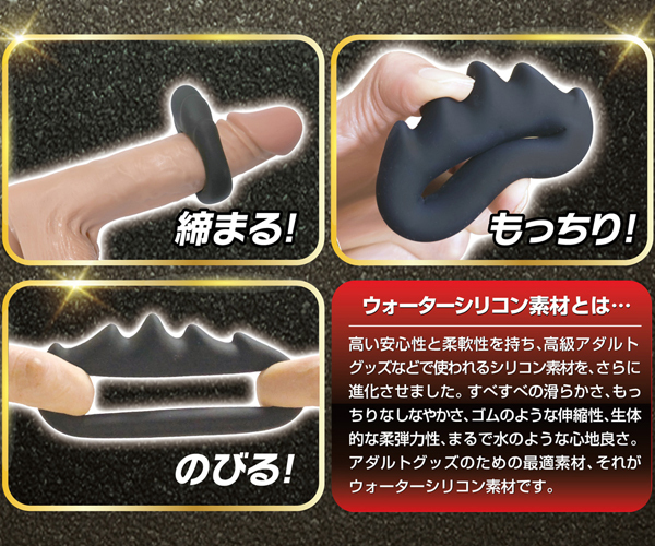 燃え上がる炎のような形状がお洒落で格好いい内径32mmのペニスリング。肌触り滑らかでもっちりとした肌触りが特徴の新素材ウォーターシリコンを採用!ゴムのように伸縮性があるのにしっかり締め付け、それでいて水のような心地よさが魅力♪ウォーターシリコンならではの質感をぜひお試し下さい。